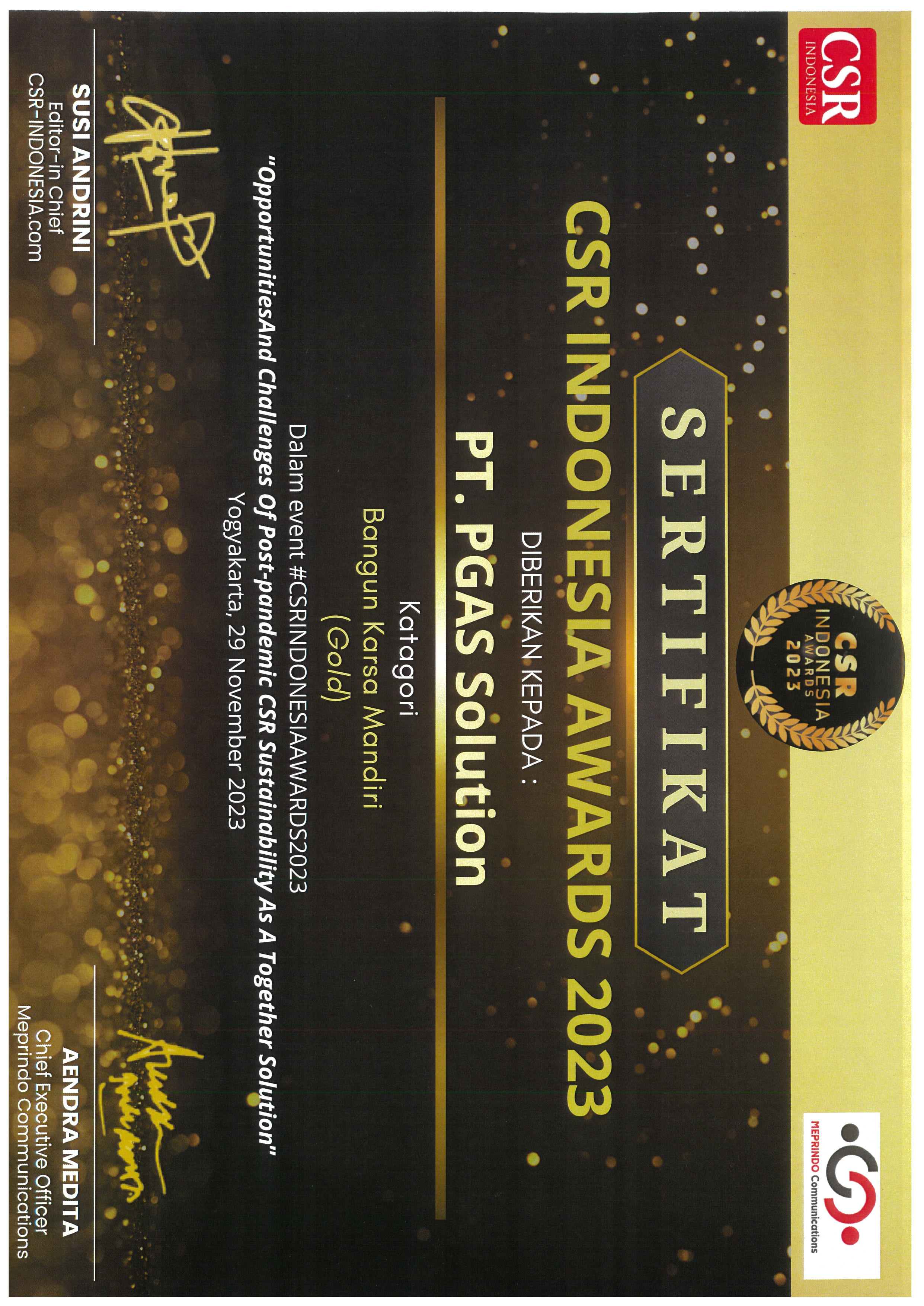 PENGHARGAAN DAN SERTIFIKASI