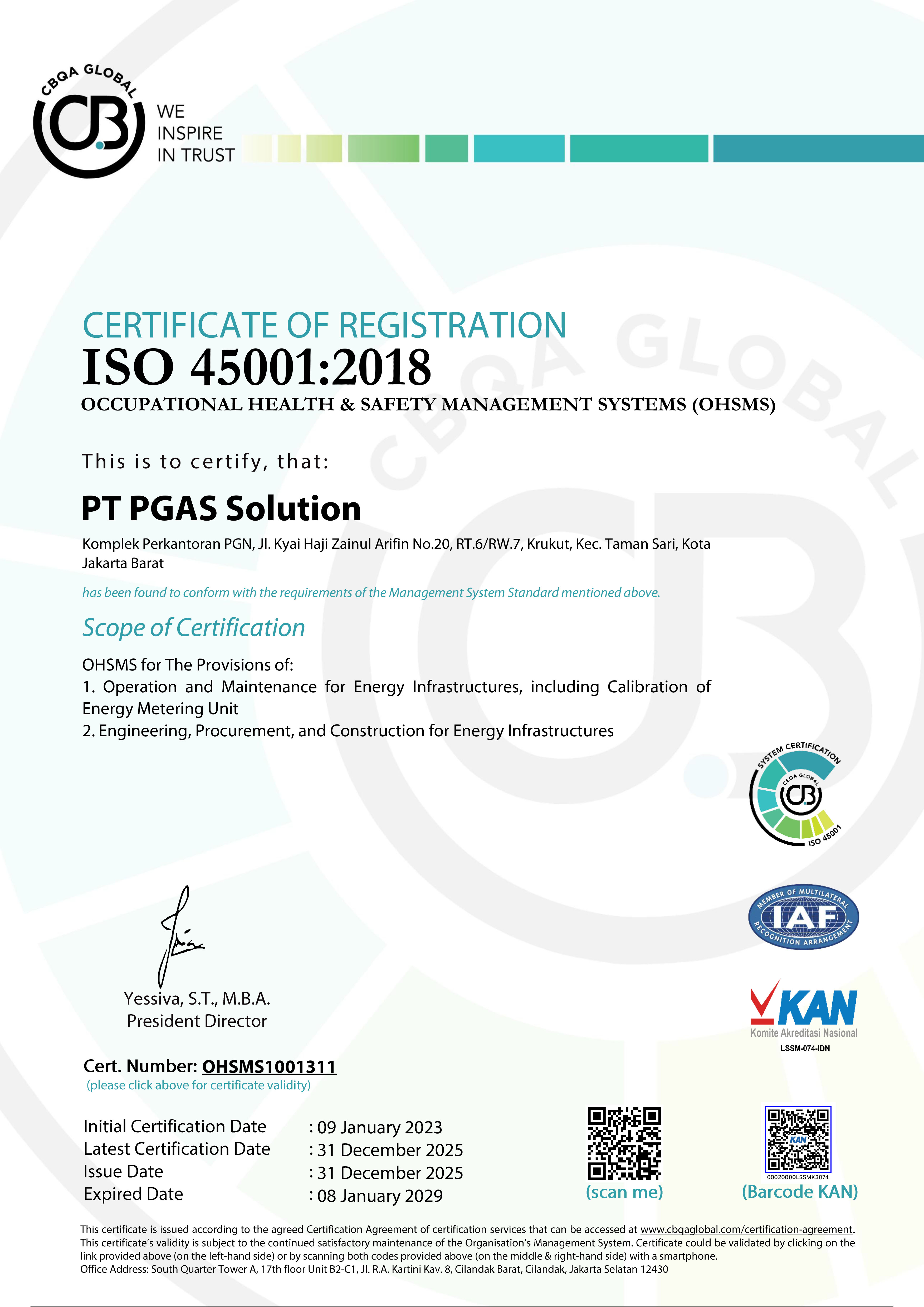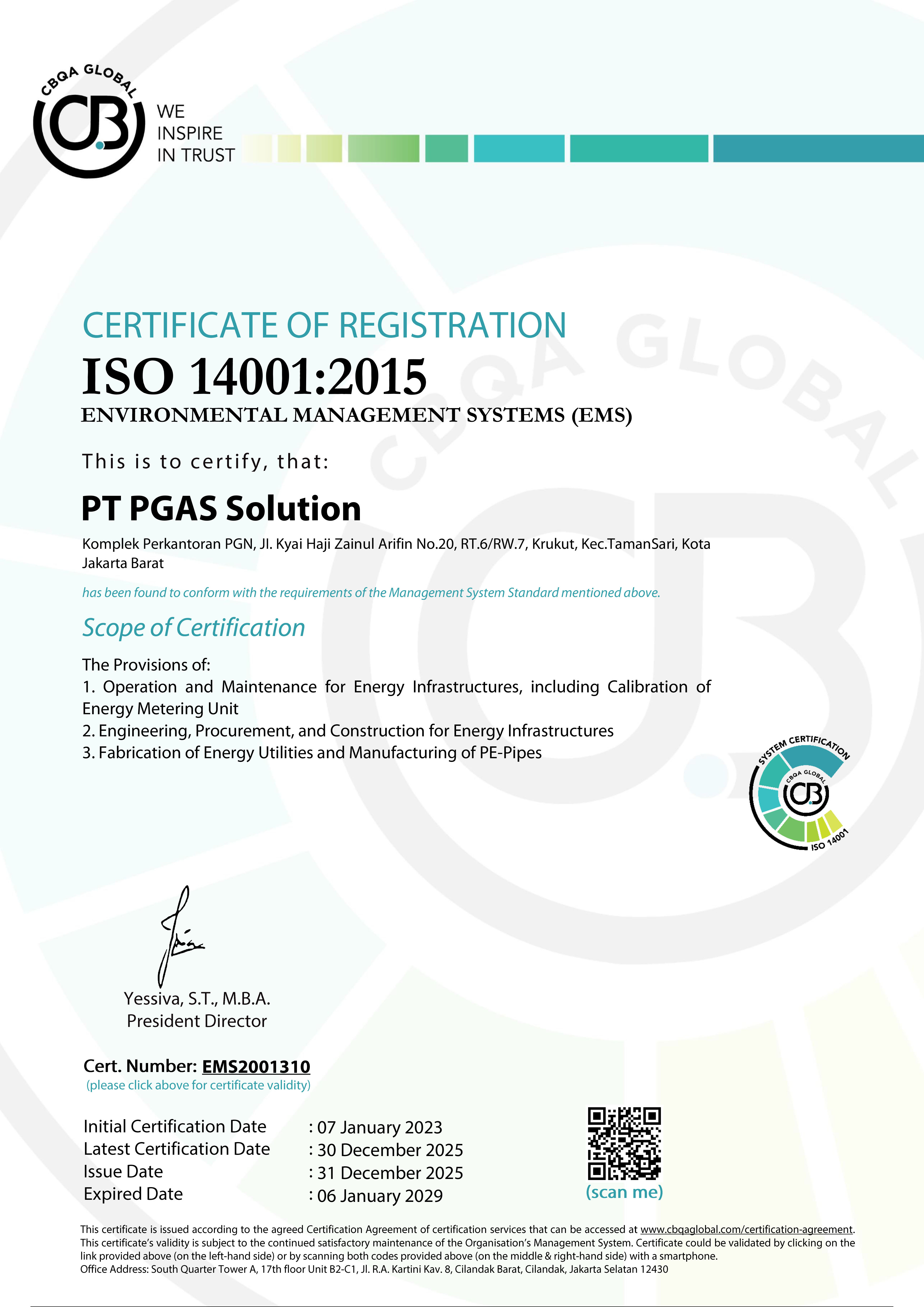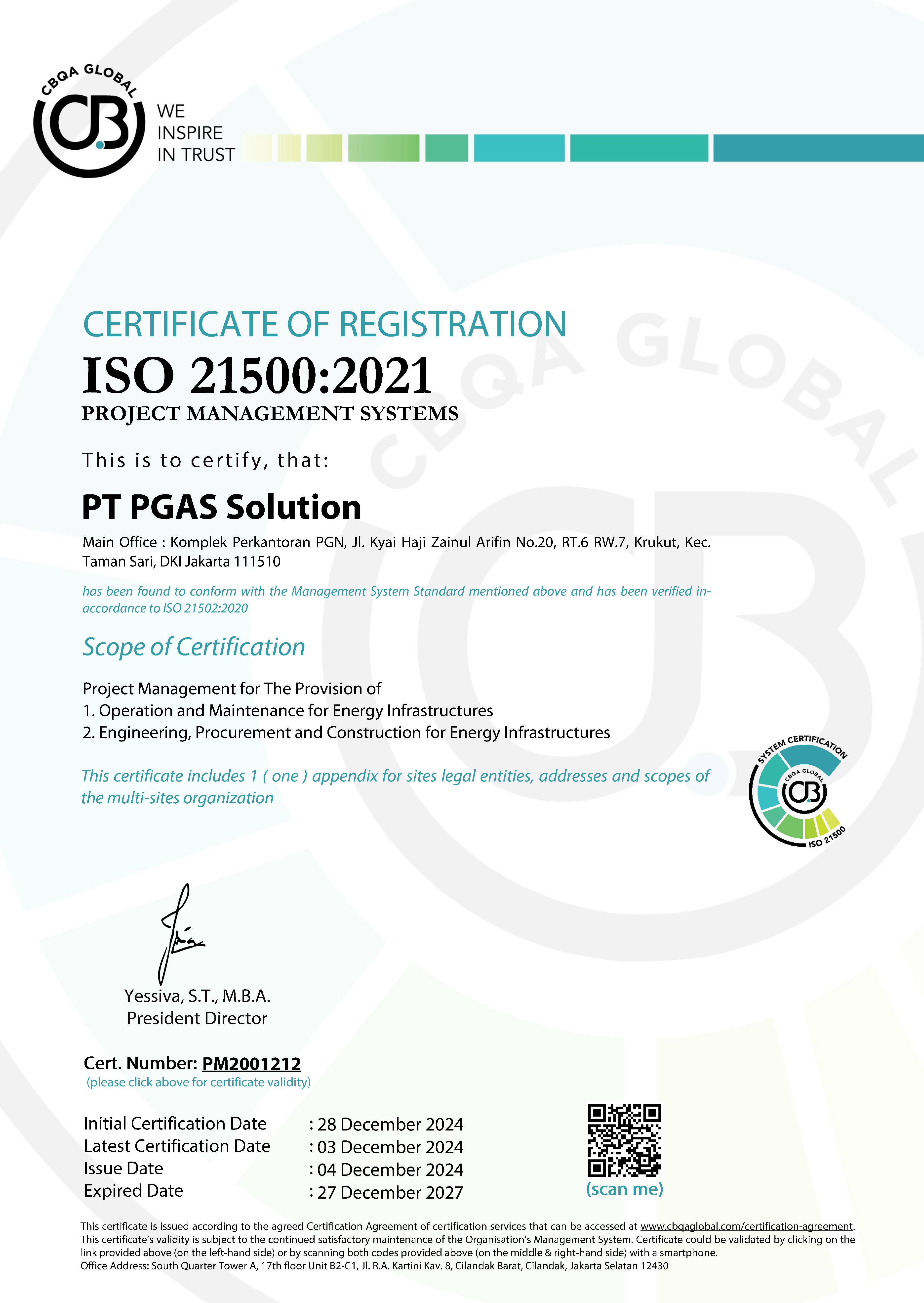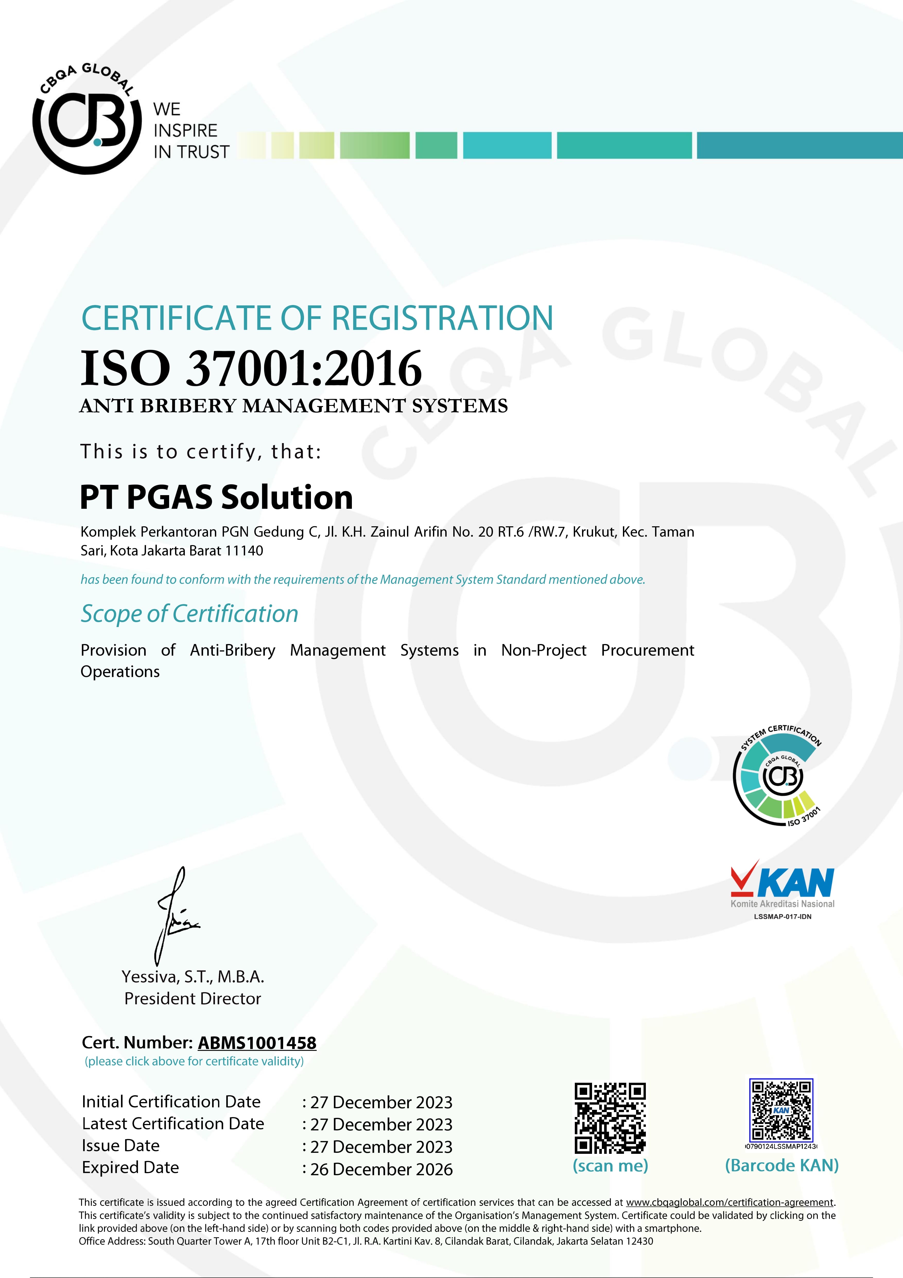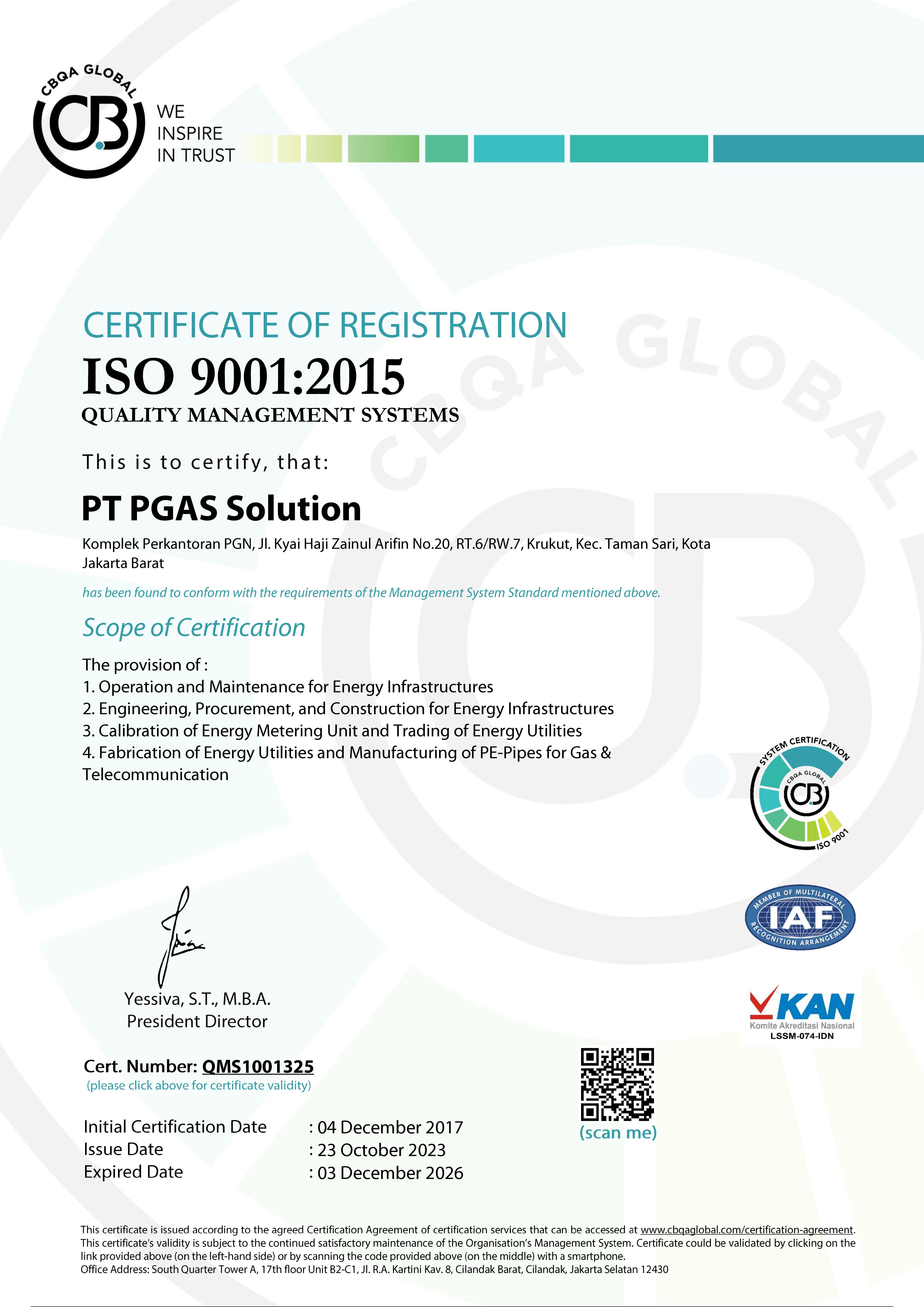 PT. PGAS SOLUTION Komplek Perkantoran PGN Gedung C Jl K.H. Zainul Arifin No. 20 Jakarta Barat, 11140 Indonesia p. +6221 6386 7037 f. +6221 6385 4506 e. info@pgn-solution.co.id